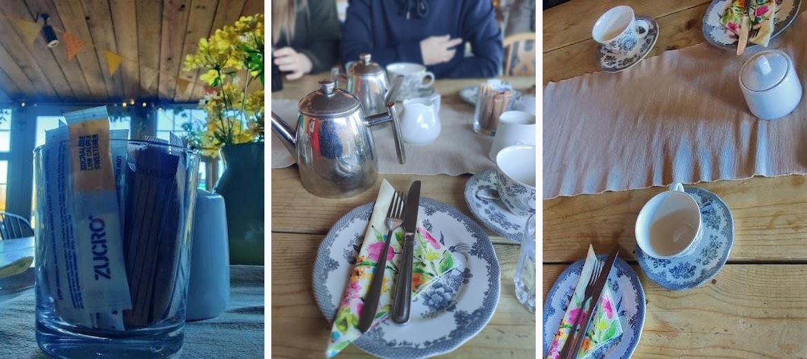 Interesting menu, friendly staff, decent quality hot drinks (including loose leaf tea), and easy to park. Very dog friendly, with a tolerant relaxed atmosphere, enjoyed by all types: many regulars, passing cyclists, bikers, young mums with toddlers etc. However, their main inside area needs curtains and more fabrics around, as it usually gets intolerably noisy. There is also a working miniature railway, with a Pullman coach, in which you can enjoy an afternoon tea!